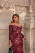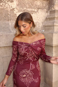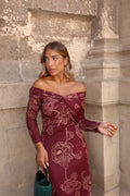 VESTIDO BARDOT ESTAMPADO GRANATE