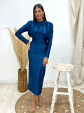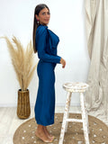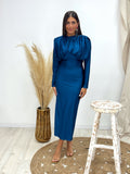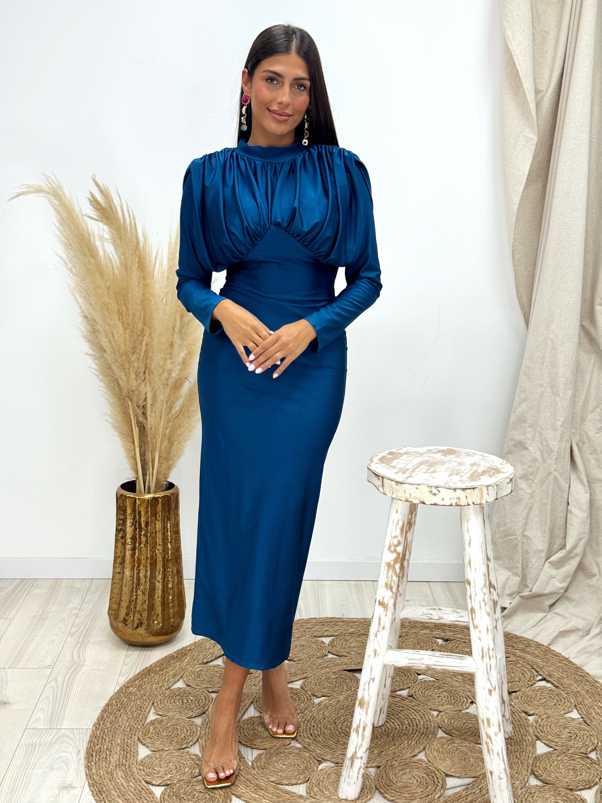 VESTIDO CUERPO FRUNCIDO PETROLEO
