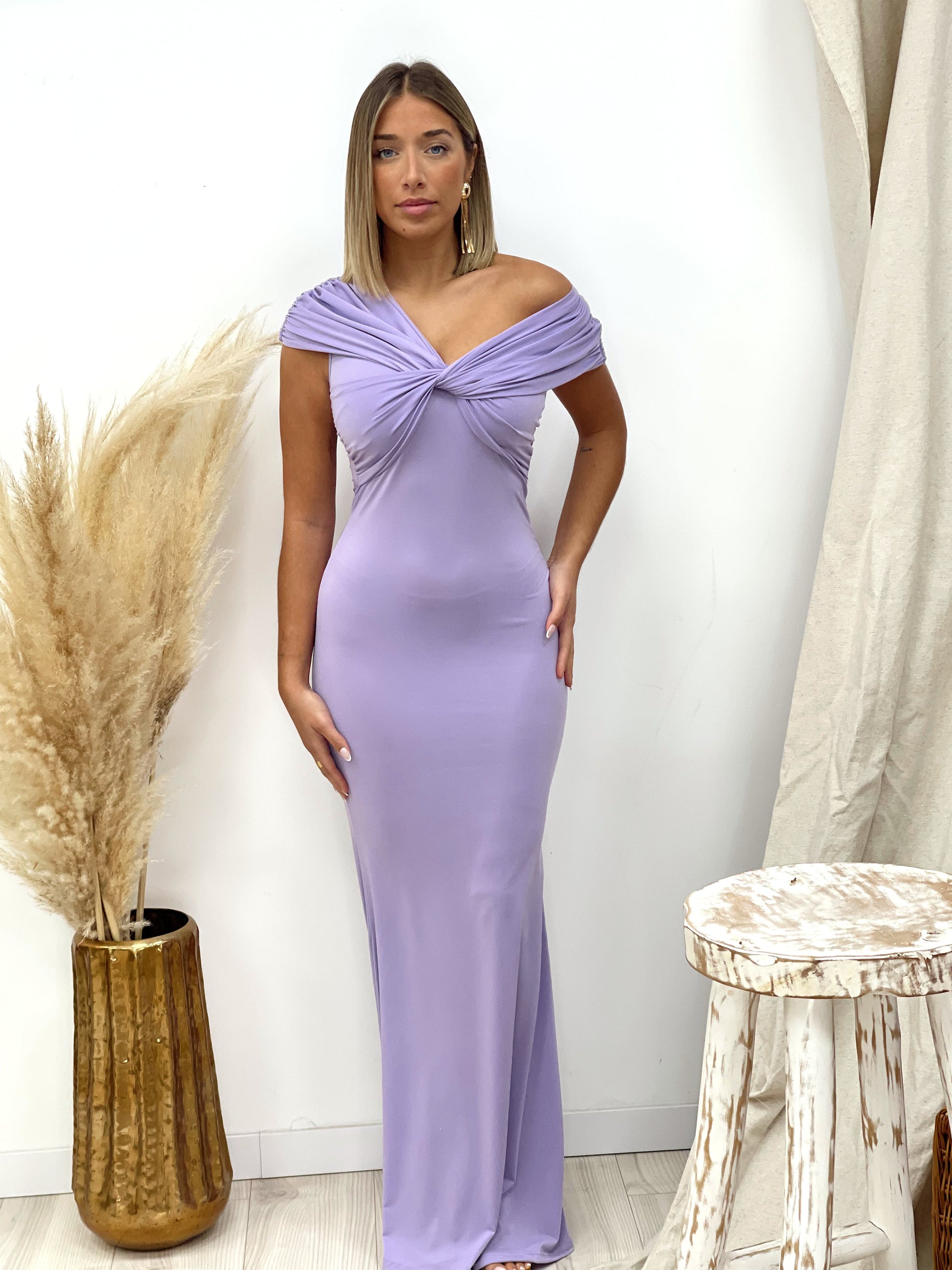 VESTIDO DETALLE ESCOTE LILA