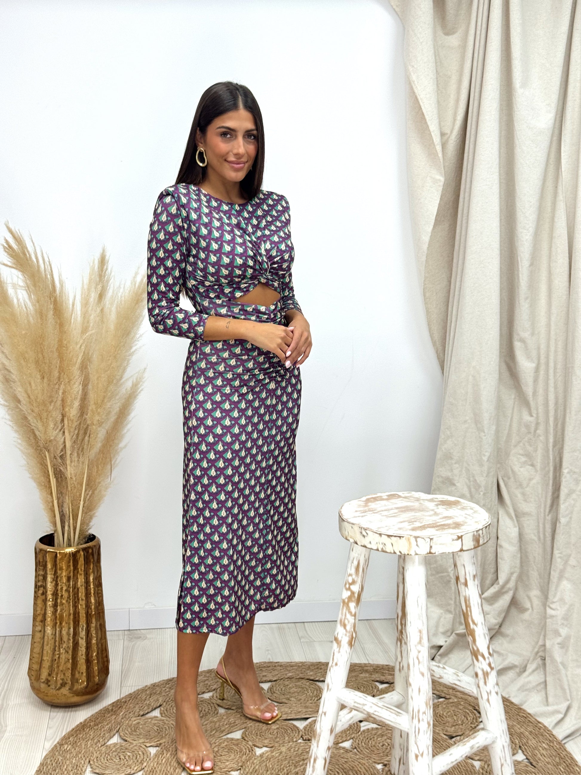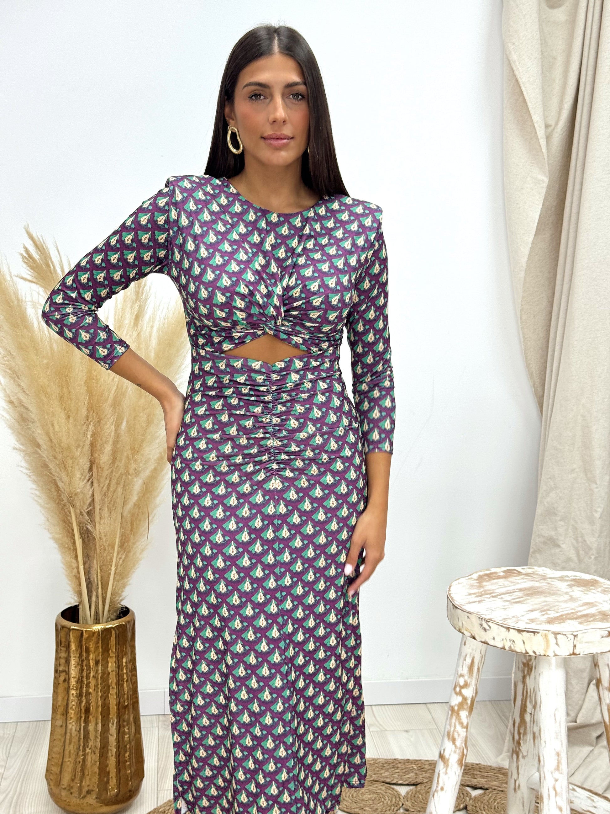 VESTIDO ESTAMPADO CUT OUT MORADO