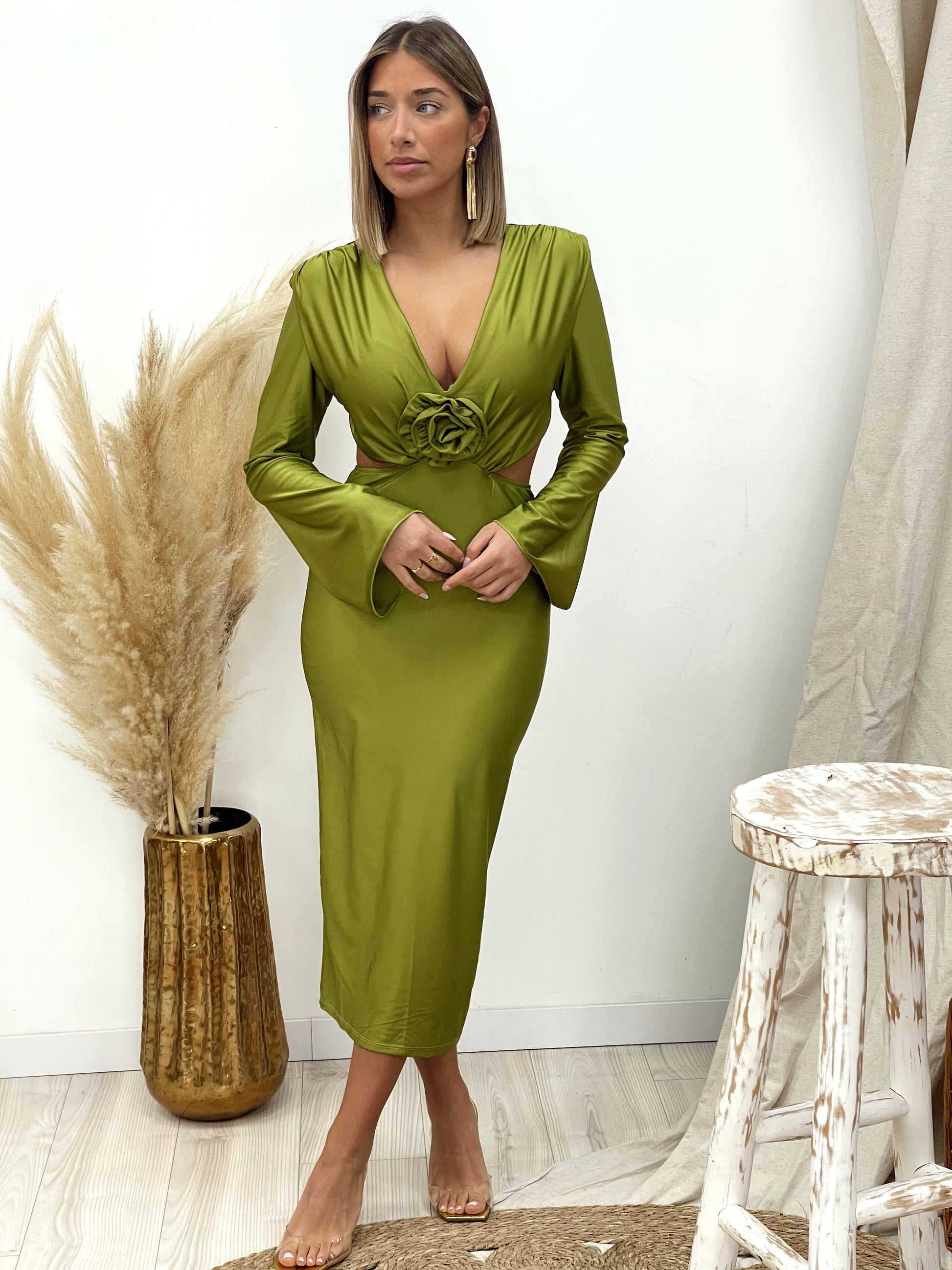 VESTIDO FLOR OLIVA
