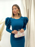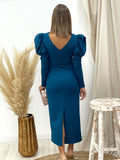 VESTIDO MANGAS ABULLONADAS PETROLEO